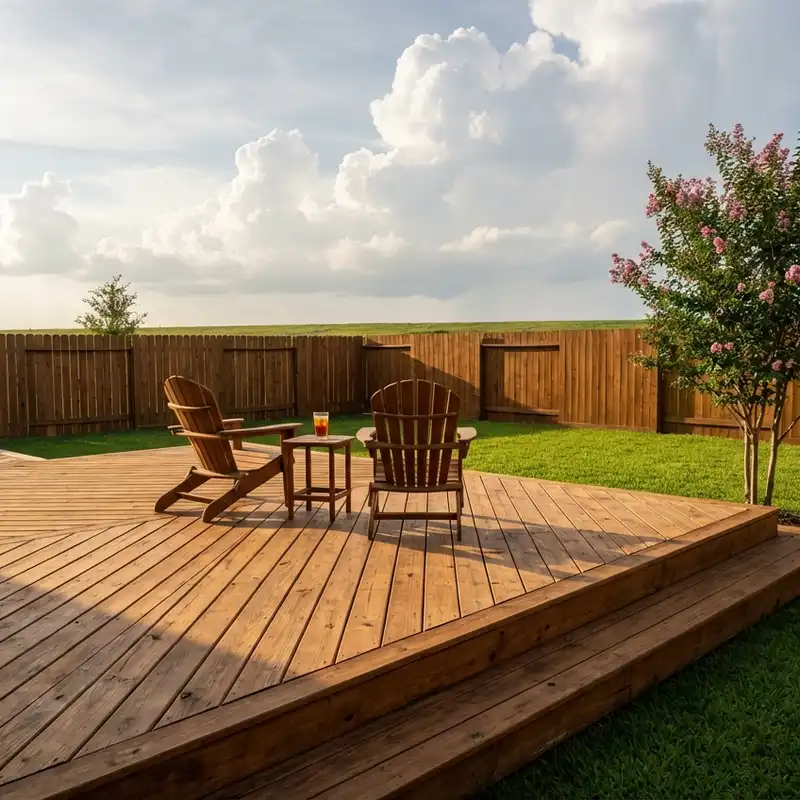 Houston decks face intense UV, 50+ inches of annual rainfall, and constant humidity that keeps wood moisture content elevated year-round. The right stain protects the wood, not just the surface.